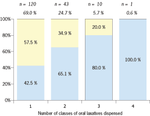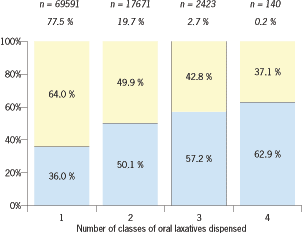 National pictureFigure one shows that the more classes of laxative people are prescribed the more likely they are to be taking one of the drugs that are likely to be causing or exacerbating the constipation. |